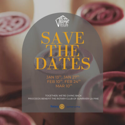 The proceeds benefit the Rotary Club of Sunriver-La Pine’s grant program. Seats fill fast. Arrive early for dinner and beverages.